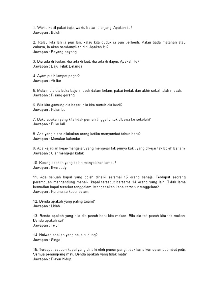 Banyak² kuih, kuih apa yang bukan kuih? Jawapan teka teki dalam nanas ada apa | nanikalux from menulismenconteng.my hewan apa yang paling aneh? Kisah perbualan juga segmen teka teki. Dalam banyak banyak singa.singa apa tidak makan orang.